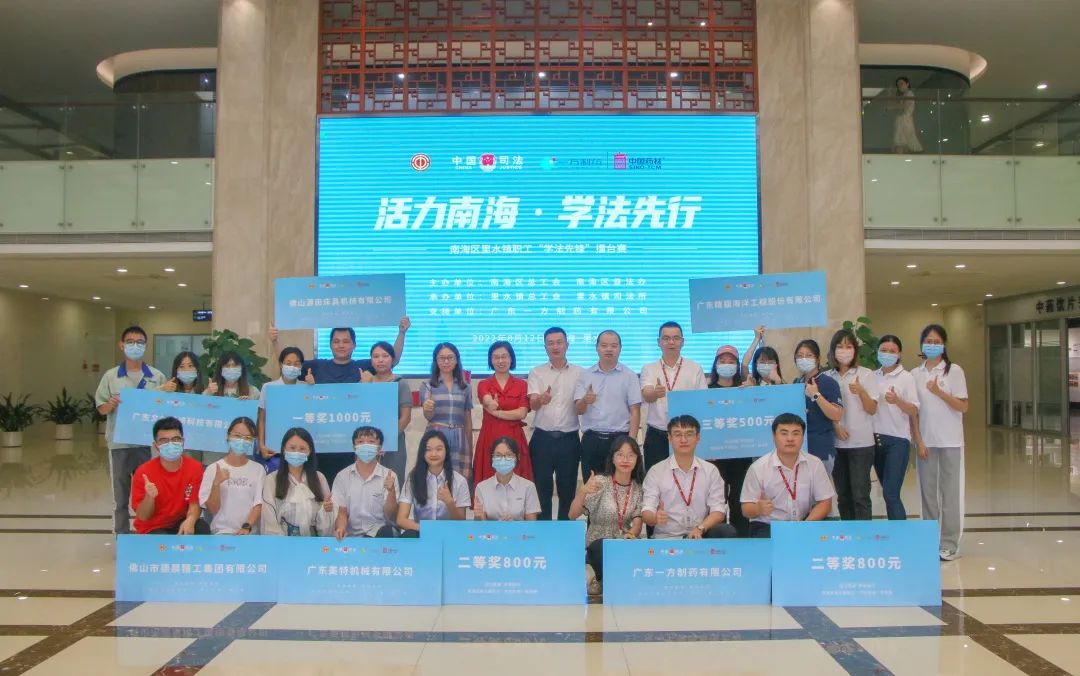 為提高企業(yè)職工法律素養(yǎng)和安全意識,豐富職工精神文化生活,8月12日,由里水鎮(zhèn)總工會聯(lián)合里水鎮(zhèn)司法所主辦的里水鎮(zhèn)職工“學法先鋒”現場擂臺賽在公司多功能廳舉行,共邀請了里水鎮(zhèn)7家企業(yè)參賽。里水鎮(zhèn)司法所所長高涵,里水鎮(zhèn)總工會副主席田源,副主席黃麗勤,一方制藥副總經理、工會主席李定發(fā)等領導出席本次活動。